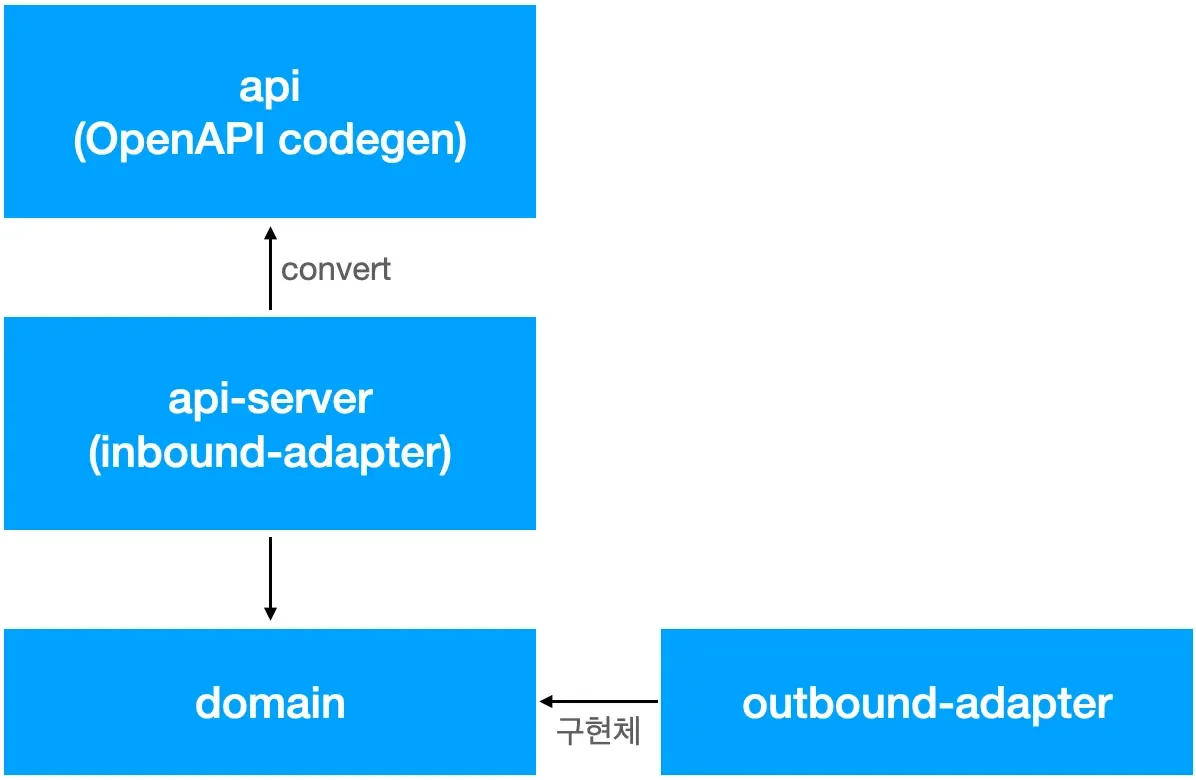 api-server - Spring MVC controller가 위치하는 모듈입니다. 헥사고날 아키텍처 관점에서는 inbound port에 대한 adapter로 작용합니다.
