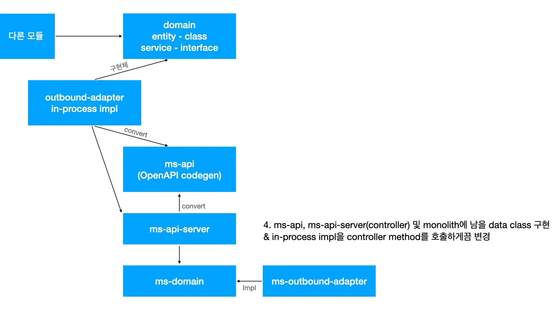 💡 이 과정 이후, monolith의 다른 도메인이 이 도메인을 사용하고 싶을 때는