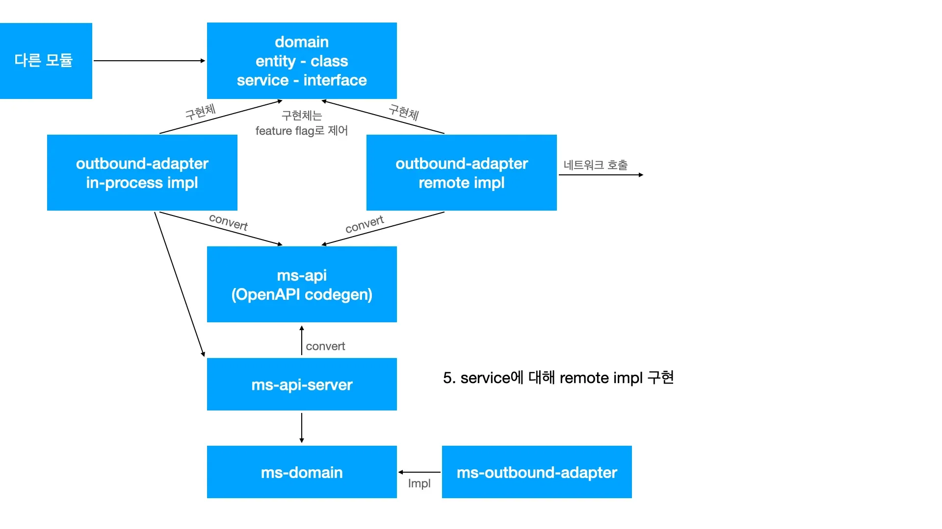 원격 ms를 사용할 시점이 되면 피처 플래그를 켜서 remote impl을 사용한다.