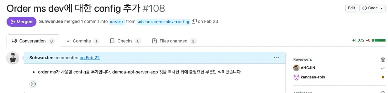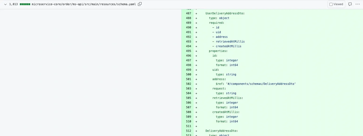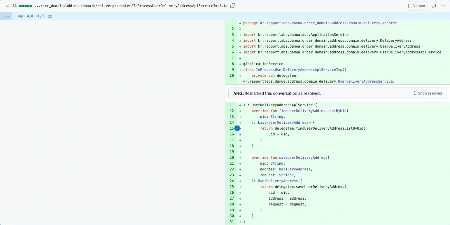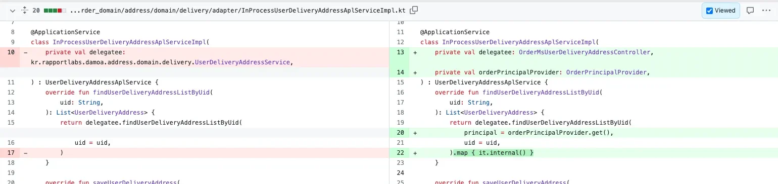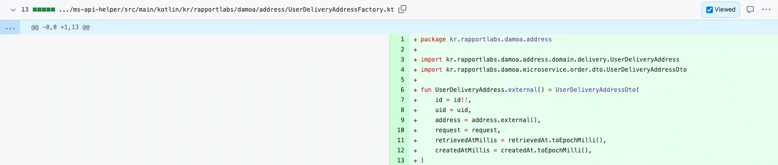 이 과정은 domain 모듈의 모든 엔티티 & 값 객체에 대해 한 번에 진행할 필요가 없으며, 일부분씩 점진적으로 변환해나가면 됩니다. 예시로, 주문 마이크로서비스 분리 시 이 과정을 8개의 PR로 끊어서 작업했습니다.