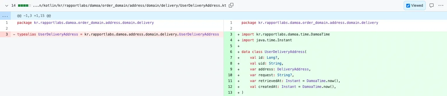 이제 2의 typealias 중 엔티티 & 값 객체를 클래스로 바꿀 차례입니다.