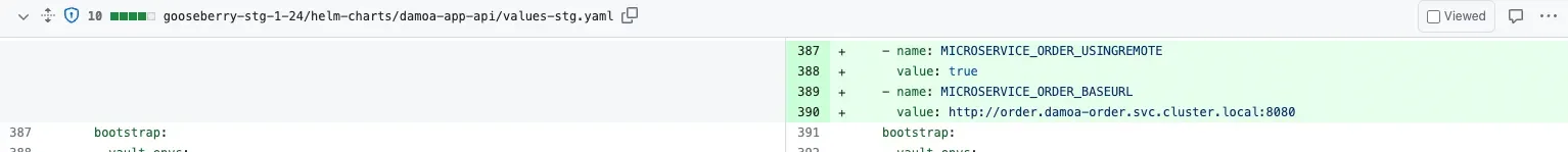 QA를 진행하기 위해서, 이전에 개발한 피처 플래그를 사용하여 STG 환경에서는 remote impl을 사용하도록 설정합니다.