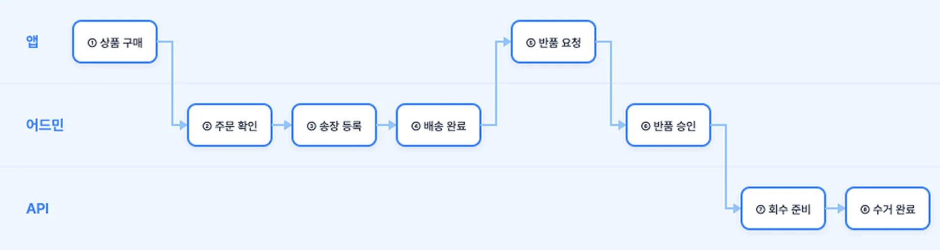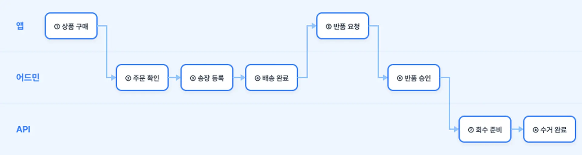 문제는 이 모든 상태를 실제 흐름 그대로 만들기 위해서 꽤 많은 단계를 거쳐야 한다는 점입니다. 앱에서 상품을 구매하고, 어드민 페이지에서 배송 처리를 하고, 다시 앱으로 돌아가 반품 요청을 하기까지의 과정을 직접 거쳐야 하죠.