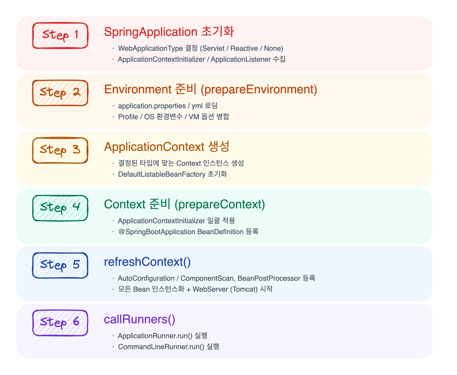 Spring Boot가 시작될 때 내부에서는 property 로딩, Bean 인스턴스 생성, 웹서버 준비 등 수많은 작업이 실행됩니다. 중요한 점은, 이 모든 과정이 Main Thread 하나에서 순차적으로 실행된다는 것입니다.