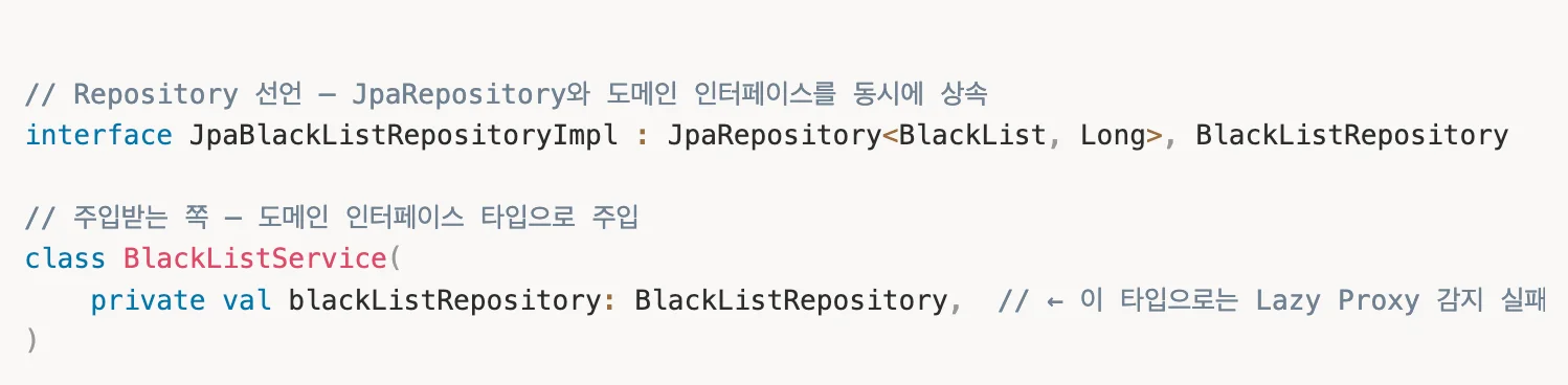 DEFERRED 모드는 LazyRepositoryInjectionPointResolver를 통해 lazy 처리할 대상 Repository를 찾아내는데, 로직 분석 결과 라포랩스에서 사용하는 두 가지 패턴들이 대상에 걸리지 않음을 알게 되었습니다.