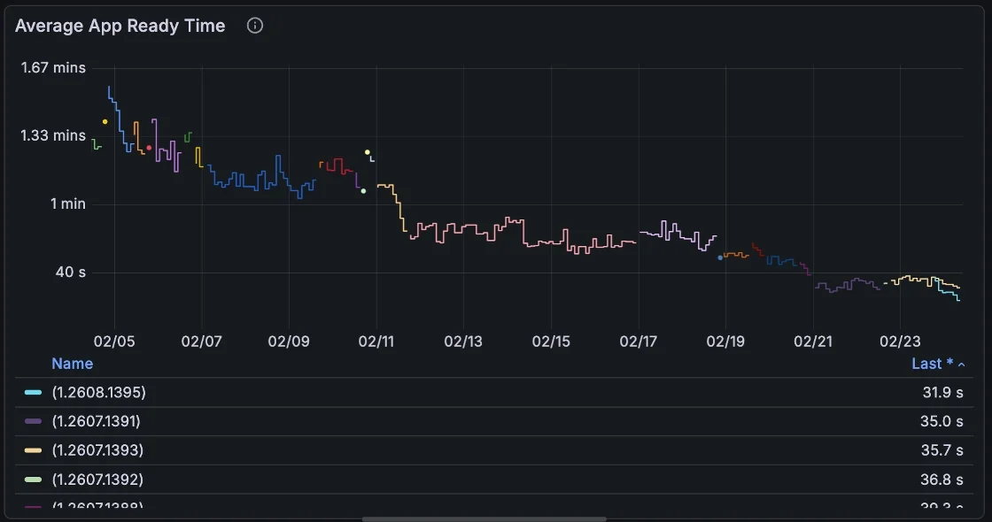6단계에 걸친 최적화를 통해 달성한 최종 결과입니다. 90초가 우습게 넘어가던 어플리케이션이 이제는 30초 만에 시작됩니다.